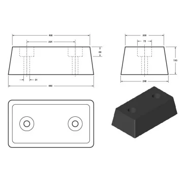 Rubber Buffer 450x250x150mm for loading dock