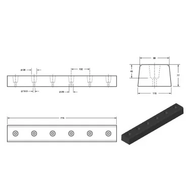 Rubber Buffer 750x115x75mm for loading docks